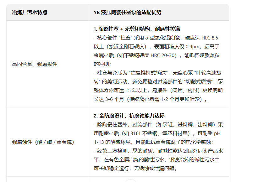 二、YB 液壓陶瓷柱塞泵適配冶煉廠污水的核心優(yōu)勢(shì)